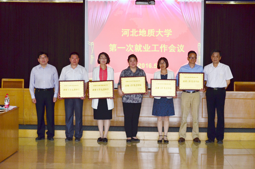 毛磊副校长宣读了beat365在线唯一官网登录学生就业工作领导小组名单,张小平副校长宣读了就业工作先进单位表彰决定,艺术设计学院、职业技术学院、管理科学与工程学院、信息工程学院、水资源与环境学院被授予“就业工作先进单位”荣誉称号。李军书记、王凤鸣校长为五个单位颁发了奖牌。