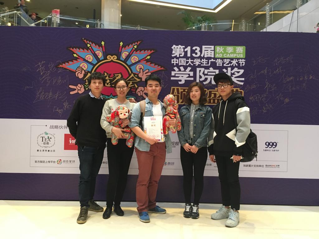 2016年3月21日,备受关注的第13届中国大学生广告艺术节学院奖秋季赛颁奖盛典在北京梅地亚中心圆满落幕。beat365官网艺术设计学院在此次比赛中斩获佳绩。艺术设计学院郭春安同学在此次比赛中获得铜奖,21日在指导老师陈慧娟的陪同下前往北京梅地亚中心领奖。