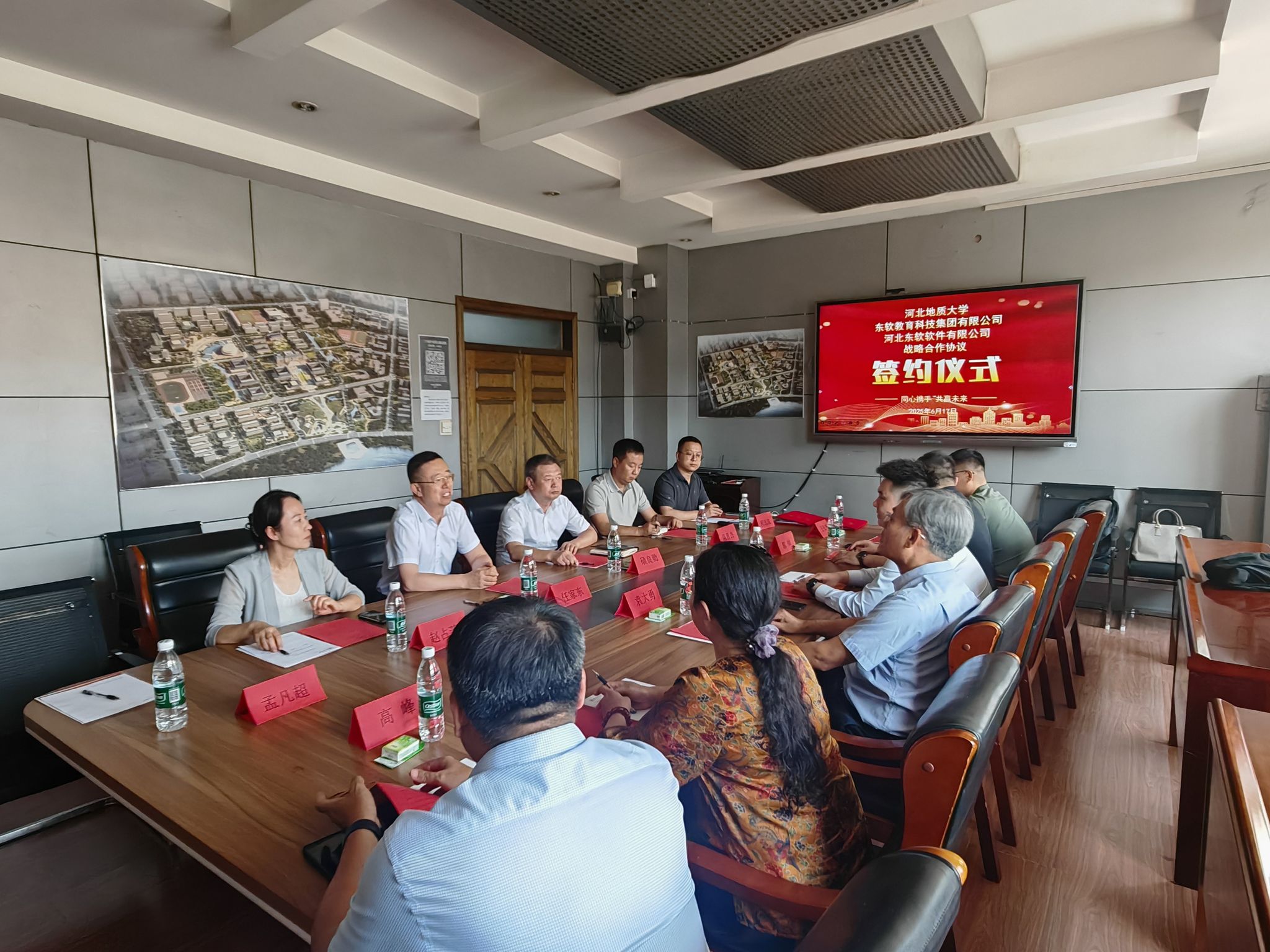 6月17日,学校与东软教育科技集团有限公司、河北东软软件有限公司共同举行校企合作签约仪式。校长任家东、东软教育科技集团有限公司高等教育事业部总经理赵龙、河北东软软件有限公司总经理袁大勇出席签约仪式并讲话。签约仪式由学校信息工程学院副院长赵占芳主持。