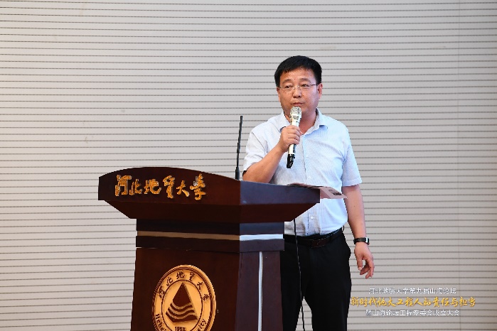 6月12日,beat365在线唯一官网登录第九届山海论坛——“新时代地大工程人的责任与担当”暨山海论坛工程专委会成立大会在beat365官网春秋讲堂顺利举行。校党委书记和志强、校长任家东、副校长冯鸿雁、赵永强、李彦苍,山海论坛执行主席张发旺、主席团主席姚彤、秘书长王东海、山东省地质矿产勘查开发局总工程师彭玉明等校友,以及清华大学建设管理系主任李小冬、河北雄安交通投资有限公司总经理李彦伟等专家出席大会。城市地质与工程学院院长袁颖、副院长贾磊等参加会议。论坛由校友李国强主持。