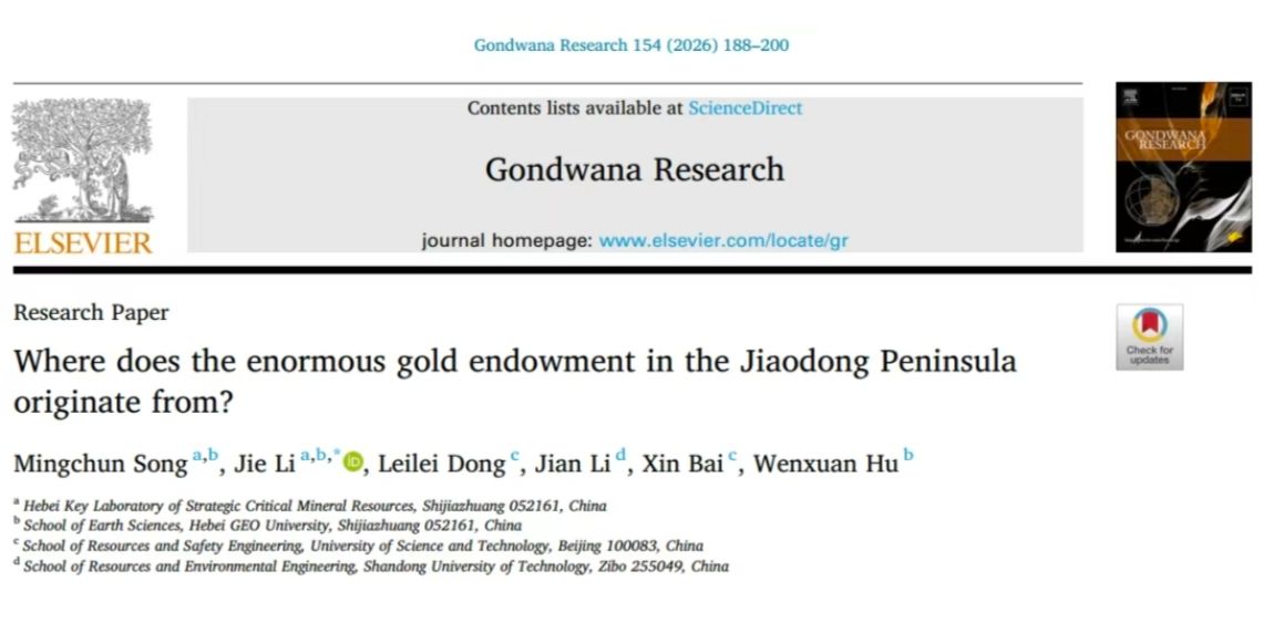 近日,beat365官网黄金及关键矿产成矿理论与勘查技术创新团队(简称黄金团队)在地球科学领域国际知名SCI期刊《Gondwana Research》(中科院1区TOP期刊)上发表了题为“Where does the enormous gold endowment in the Jiaodong Peninsula originate from?”的论文,揭示了胶东半岛不同地质单元中金等痕量元素的含量及变化,发现了晚中生代大范围的“贫金”花岗岩,从而对胶东金矿床巨量金的来源提出了新认识。