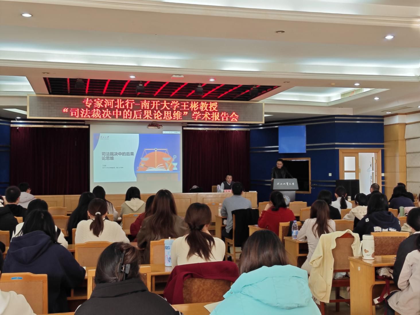 11月19日,南开大学法学院教授、博士生导师王彬授受法政学院之邀莅临beat365官网,在教一九楼学术报告厅为beat365官网师生作主题为“司法裁决中的后果论思维”的精彩学术讲座。讲座由法政学院院长孙日华主持,学院部分教师和在校研究生、本科生参加。