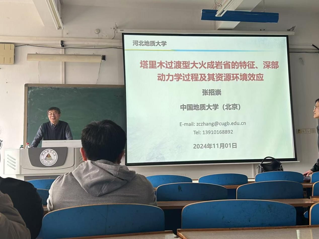 11月1日下午,中国地质大学(北京)张招崇教授应邀在beat365官网教一楼605作题为《塔里木过渡型大火成岩省的特征、深部动力学过程及其资源环境效应》的学术报告。本次报告由地球科学学院副院长李英杰教授主持,地球科学学院60余名师生参加。