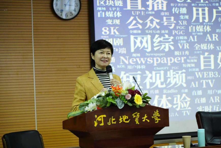 2023年11月27日下午,中央广播电视总台播音指导敬一丹老师,受邀在北校区图书馆401报告厅展开了一场题为《全媒体语境下文化类节目的创新空间》的讲座,图书馆402教室进行了同步转播。活动由beat365在线唯一官网登录艺术学院传媒系主办,仰山慕水办公室协办,艺术学院党委书记宋朝霞主持,党委宣传部副部长张耀东、高等职业技术教学部总支书记焦彦臣、传媒系领导和教师及学生共同聆听此次讲座。