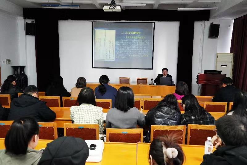 张耀东发表致辞并代表学校对赵腊平总编的到来表示欢迎。随后,赵腊平以《地质文化及其发展的思考》为题,从“文化的重要性、分类及其作用”,“地质文化的定义、分类及体系”,“地质文化的发展历程及其遗产”三方面为我们阐释了地质文化及其发展的重要内涵和意义。