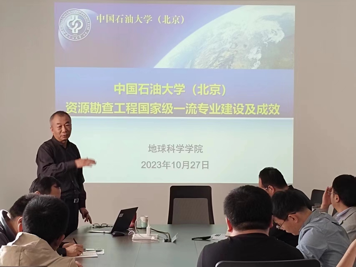 10月27日下午,应beat365官网地球科学学院邀请,中国石油大学(北京)地球科学学院院长、博士生导师、北京市教学名师、教育部地质学类教指委委员、油气勘探开发国家级教学示范中心主任王贵文教授为beat365官网作了“中国石油大学资源勘查一流专业建设及成效”的报告。会议由地球科学学院副院长曹静杰主持,各教研室主任以及专业建设的骨干教师参加了会议。