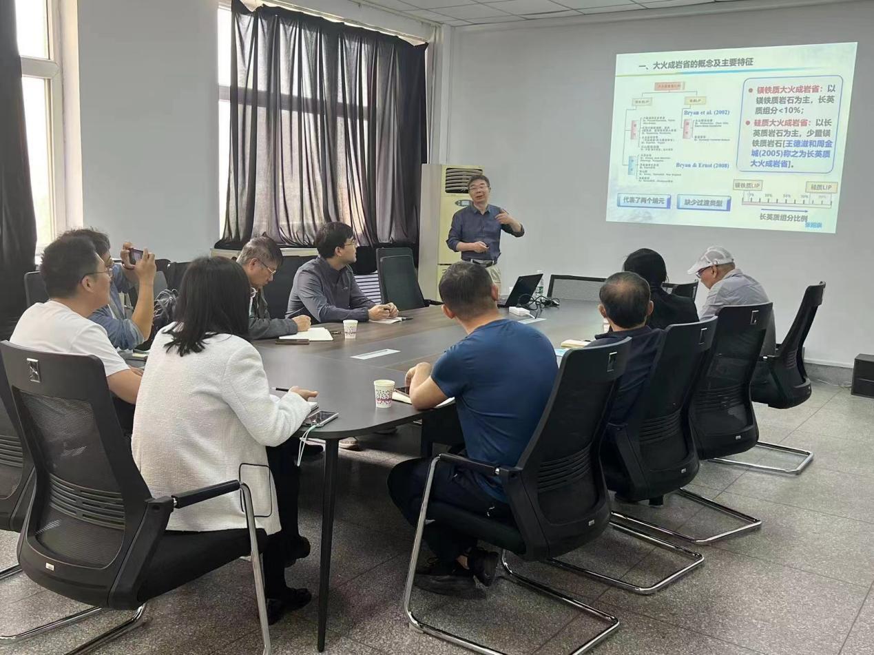 报告中,张招崇首先向广大师生系统介绍了一般大火成岩省(LIPs)的定义、地质特征、分类和成因争议;然后以我国塔里木大火成岩省为例,展示了其团队如何通过详细的野外和室内研究,分析得到了该大火成岩省的成因以及其相应的资源和环境效应,理论结合实际,与时俱进。报告后,参会人员就大火成岩的成因以及对现代社会的影响等问题与张招崇教授进行了深入的探讨。