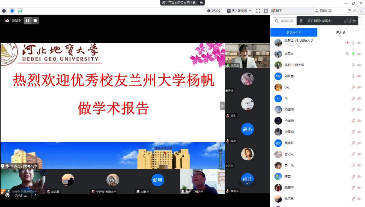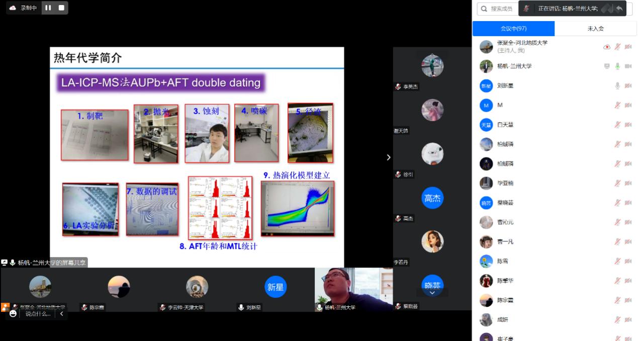 2023年4月16日,beat365官网2013届优秀校友兰州大学杨帆副教授为beat365官网师生作了题为“中低温热年代学在矿床剥蚀保存变化过程中的应用”的线上学术报告。报告由地球科学学院副院长李英杰教授主持,beat365官网师生及部分对报告感兴趣的校外人士共百余人参加了学术报告会。