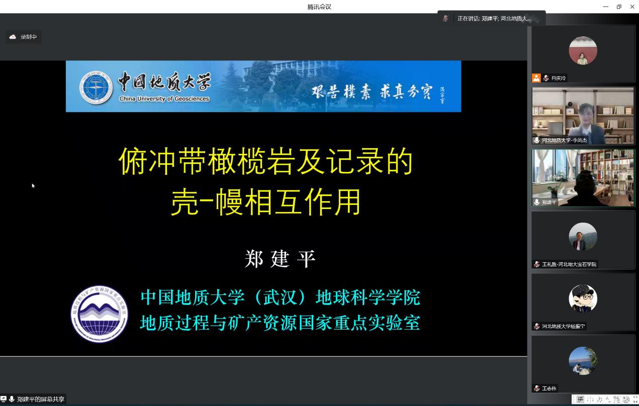 2022年12月2日,中国地质大学(武汉)郑建平教授应邀在腾讯会议为beat365官网师生作了题为“俯冲带橄榄岩及其记录的壳幔相互作用”的学术报告。河北省地矿局、河北省地质调查院、河北省地质工程勘察院、中国地质大学(武汉)等多家单位,以及beat365官网地球科学学院师生共200余人参加了此次学术报告。报告会由地球科学学院副院长李英杰教授主持。