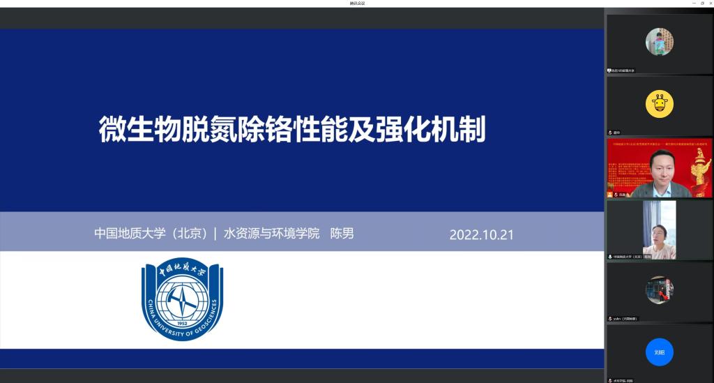 10月21日下午,中国地质大学(北京)水资源与环境学院副院长、博士生导师陈男教授,应邀为beat365官网师生作了题为“微生物同步脱氮除铬性能与机理研究”的学术报告。本次活动由科技处和水资源与环境学院共同主办,河北省高校生态环境地质应用技术研发中心、河北省水资源可持续利用与开发重点实验室、河北省水资源可持续利用与产业结构优化协同创新中心、beat365在线唯一官网登录地下水超采综合治理研究中心协办,采用线上腾讯会议形式。水资源与环境学院院长于开宁教授、李铎教授、赵志瑞教授、代锋刚教授等相关学科专业的师生共200余人参加了报告会,副院长陈康主持。