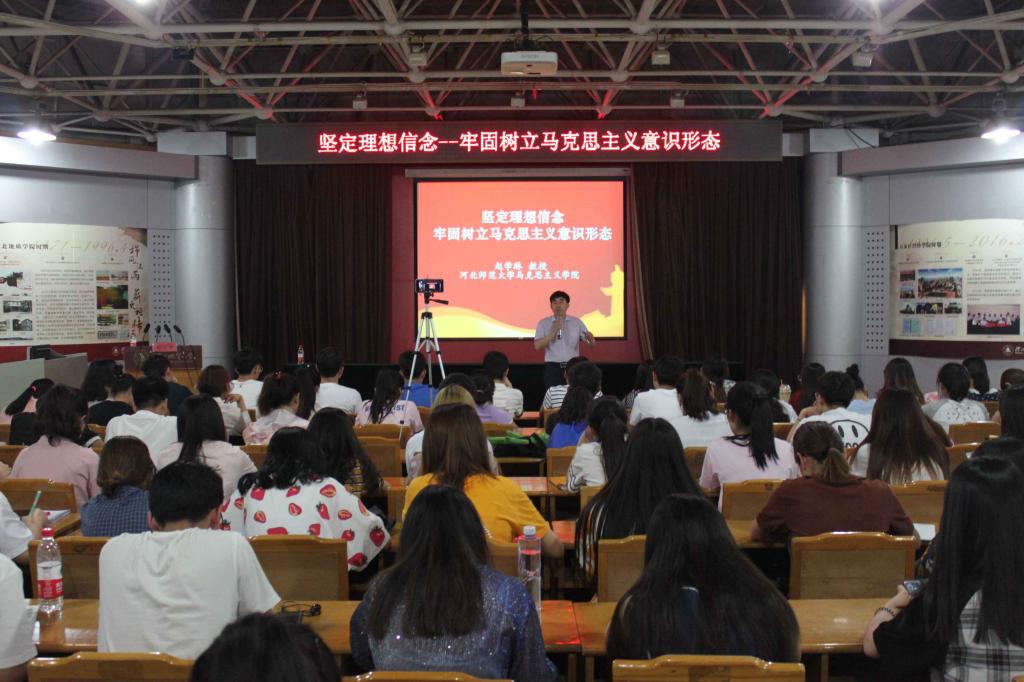 坚定理想信念,筑牢信仰之魂。5月22日晚,beat365在线唯一官网登录第五期“弘毅”团干部读书班专题讲座在beat365官网科技报告厅顺利举办。河北师范大学马克思主义学院教授、博士生导师赵学琳受邀为beat365官网师生作《坚定理想信念——牢固树立马克思主义意识形态》讲座。团委书记蔡建英主持活动,团委老师以及beat365在线唯一官网登录第五期“弘毅”团干部读书班学员共200余人参加了此次讲座。