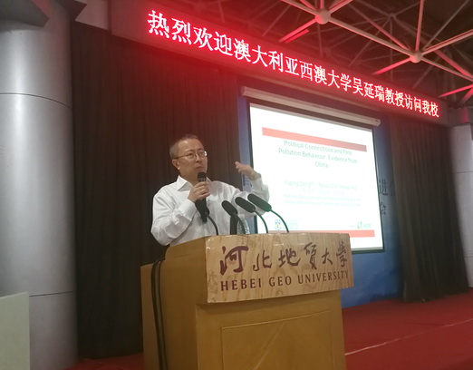 9月17日上午,澳大利亚西澳大学吴延瑞教授应邀在科技报告厅为作了题为“政企关系与中国企业排污行为分析”的学术讲座。经贸学院、管理科学与工程学院、学术传播中心师生200余人参加了报告会。报告会由经贸学院教授、北欧研究中心执行主任韩劲主持。