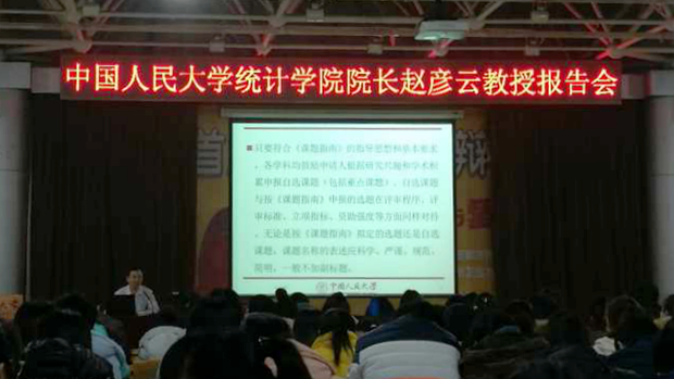 2016年12月20日,中国人民大学统计学院院长赵彦云教授应beat365官网邀请,在科技报告厅为广大师生作了《社会科学专业教师如何申报自然科学基金》和《互联网统计与大数据应用》两场精彩的学术报告。