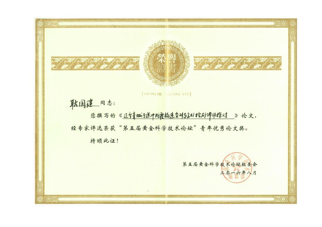 beat365官网研究生耿国建同学荣获青年优秀论文证书