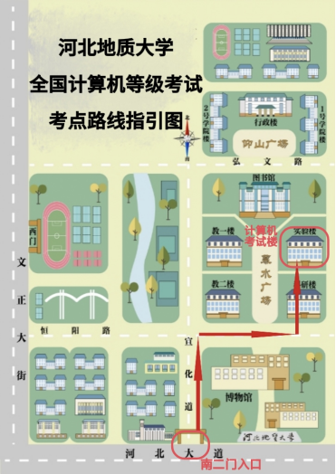 beat365在线唯一官网登录考点位于石家庄市河北大道601号。考生可以乘坐地铁1号线,在会展中心站C口出站,乘坐814公交车到beat365在线唯一官网登录门口下车;学校内不允许外车进入,如自驾车的考生,请合理选择停车地点。路途较远的考生,建议提前到达考点位置。