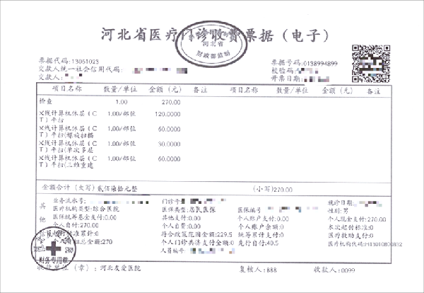 2、其他凭证:(1)校医院转诊记录(暑假或实习期间不用提供);(2)校外门诊病历;(3)如报销暑假期间户籍地发生的门诊医疗费用,还需提供身份证明(身份证或户口本照片);(4)如报销实习期间在实习地发生的门诊医疗费用,还需提供实习证明(需盖实习单位或各二级学院公章)。(5)如提供的票据凭证没有明细项目,如下图: