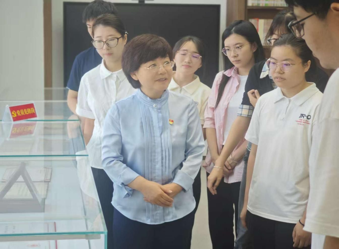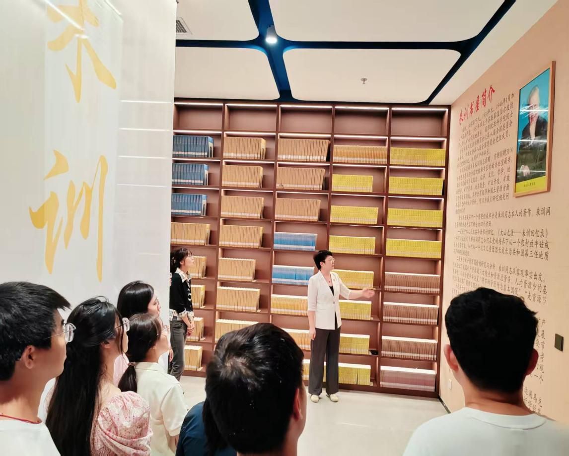 接着,图书馆馆长郭雅洁引领同学们走进了朱训书屋。她详细介绍了原地矿部部长朱训先生的平生以及先生向beat365官网慷慨捐赠的珍贵藏书、本人四个方面的著作。每一册书都承载着朱训先生的智慧与情怀,它们静静地躺在书架上,等待着同学们去翻阅、去领悟。