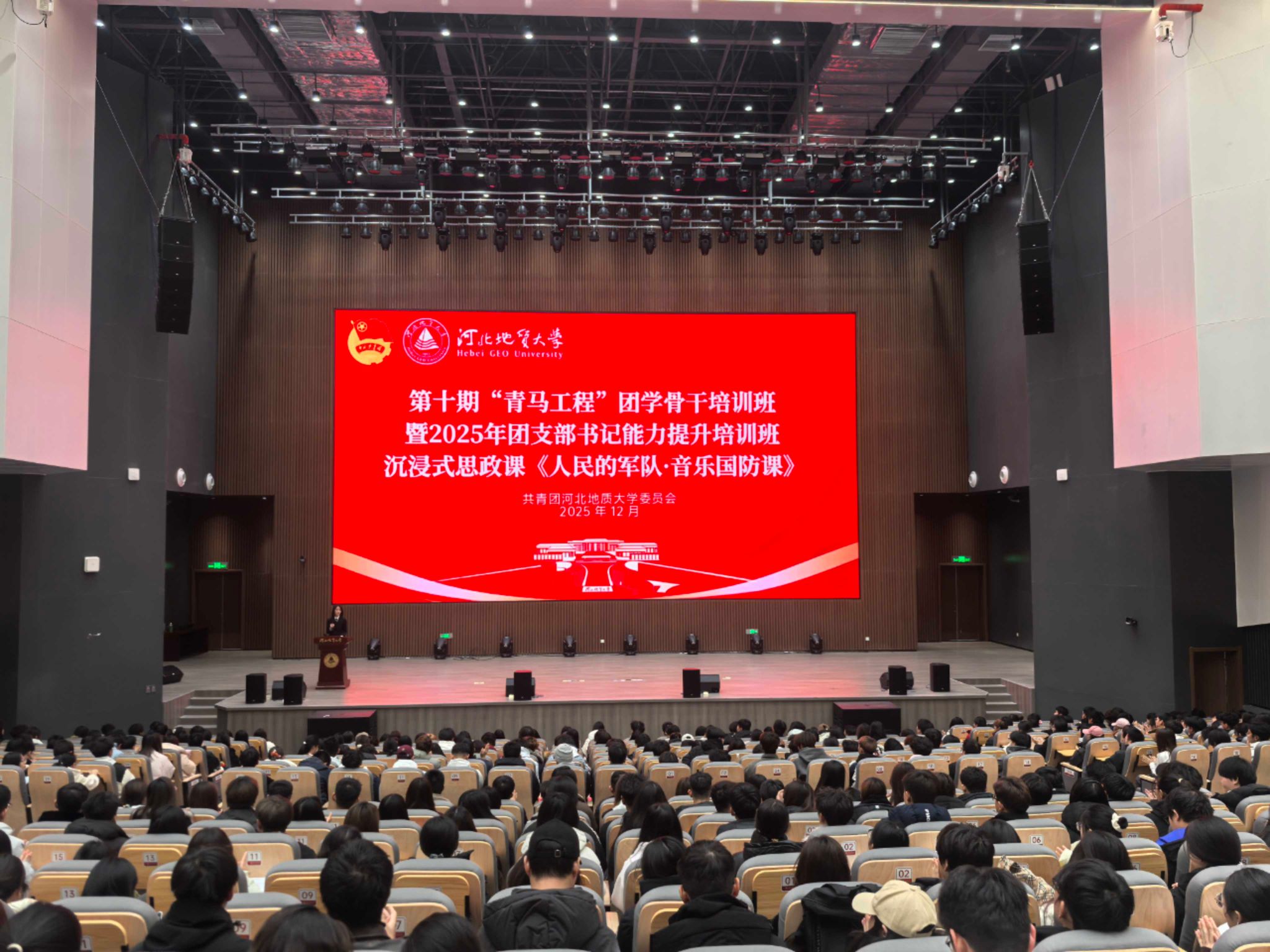 12月5日,校团委与石家庄经济职业学院团委开展联学共建活动。本次活动以第十期“青马工程”团学骨干培训班为依托,以沉浸式思政课《人民的军队·音乐国防课》为主题,特邀国防教育基地——店房国防军事小镇国防教育宣讲师刘芳担任主讲人。石家庄经济职业学院师生代表40余人,以及beat365官网第十期“青马工程”培训班学员、2025级团支部书记、学院(部)学生代表一同参与学习。