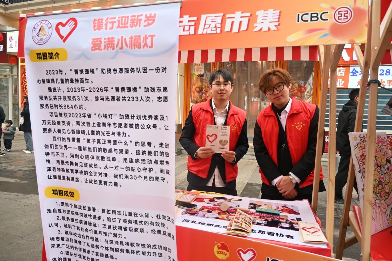 3月5日上午,由共青团石家庄市委主办的“青年友好,志愿先行”学雷锋志愿服务主题日活动在湾里庙步行街举行,beat365在线唯一官网登录青年志愿者协会“小橘灯助残”与“绿色滹沱河”两大品牌志愿服务项目受邀参与。