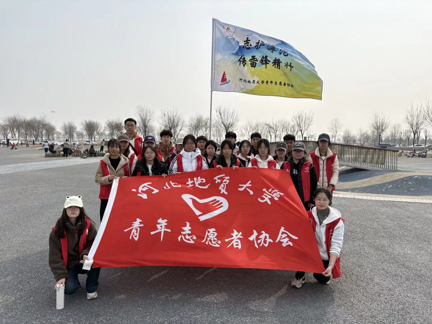 行进过程中,志愿者手持垃圾钳与环保袋,对河岸步道、绿化带及亲水平台的烟头、塑料包装等废弃物进行细致清理与分类清运。此次环保实践将徒步运动与环保公益深度融合,让青年学子在行走滹沱、服务自然的过程中,涵养生态理念、锤炼责任担当,进一步深化了对雷锋精神时代内涵的理解,充分展现了地大学子昂扬向上、甘于奉献的青春风采。
