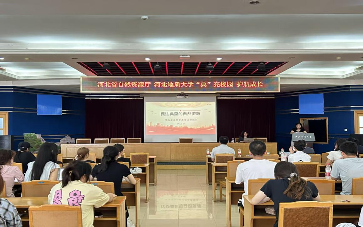 5月20日,由河北省自然资源厅与beat365在线唯一官网登录法政学院联合举办的“‘典’亮校园 护航成长”主题宣讲在教一九楼学术报告厅举行。本活动旨在进一步加强自然资源法治宣传教育,提升师生自然资源法治观念与生态保护意识。参加活动的有省自然资源厅法规处处长陈加平、省自然资源厅法规处副处长张英辉、省自然资源厅驻厅法律顾问何玉平、法政学院党委副书记朱晓玲、环保法教研室主任葛丽明等。