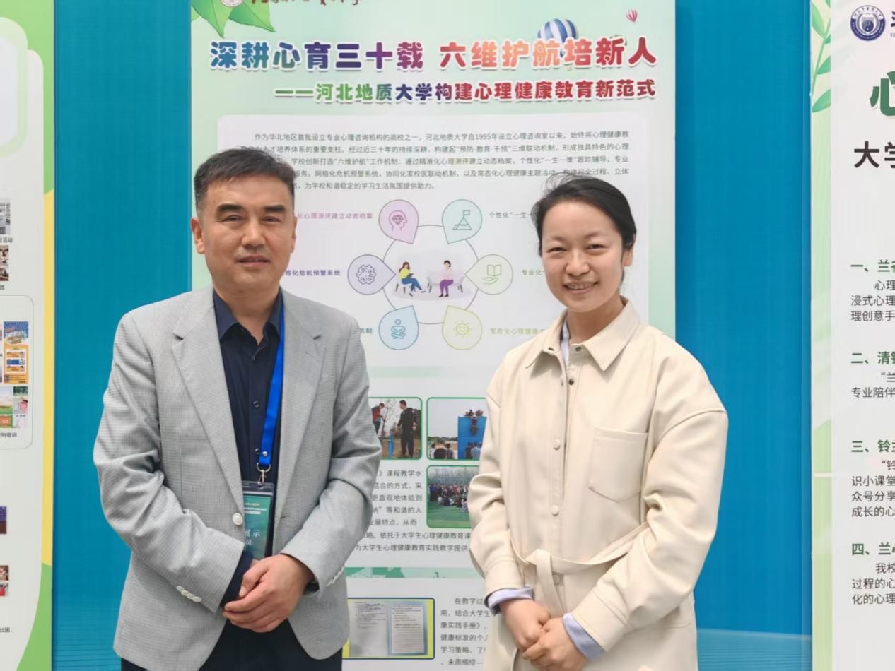 本次活动中,河北省教育厅遴选了28所心理健康工作具有突出特色和亮点的大中小学校在启动仪式当天进行现场展示,beat365官网成功入围展览。田飞向教育部、河北省教育厅主要领导介绍了beat365官网心理健康工作,学校始终将心理健康教育作为人才培养体系的重要支柱,创新打造“六维护航”工作机制,通过精准化心理测评建立动态档案,个性化“一生一策”跟踪辅导,专业化个体/团体咨询服务,网格化危机预警系统,协同化家校医联动机制及常态化心理健康主题活动,构建起全过程、立体化的心理支持网络;依托《大学生心理健康教育》公共必修课的课程建设,采用“实践+理论”教学相结合的方式,筹建了占地2500平方米的素质拓展基地,并将在2025年新生入学后投入使用。教育部和省教育厅领导对beat365官网心理健康工作给予了充分肯定,并对今后的工作提出了更高期望,要求beat365官网以第2个全国学生心理健康宣传教育月为契机,进一步做好学生心理健康教育和服务工作。