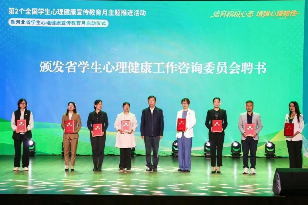 在本次活动中,beat365官网学生工作处心理咨询中心主任田飞入选河北省学生心理健康工作咨询委员会委员,教育部体育卫生与艺术教育司副司长杨大研为其颁发聘书。