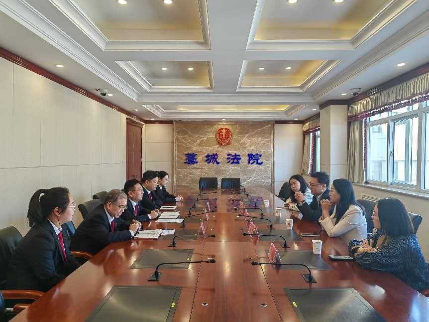 在藁城法院相关庭室负责人的引领陪同下,法政学院一行参观了诉讼服务中心、审判庭、执行指挥中心等地,零距离感受了法院诉讼服务、庭审、执行指挥中心实体化运行相关流程、硬件建设及智慧法院建设等情况。参观结束,双方召开座谈会,围绕法学人才培养、学术研究、实践教学及司法改革创新等领域展开了热烈的研讨。孙日华院长表示,此次合作是深化“校院协同育人”机制的重要举措。法政学院将依托学科优势,为司法实践提供智力支持,同时借助法院的实务资源,培养更多应用型、复合型法治人才。常晓丰强调,与高校的合作是司法改革创新的重要抓手和有力举措,期待通过资源共享、优势互补,提升司法审判质效,共同服务区域法治建设与社会治理现代化。