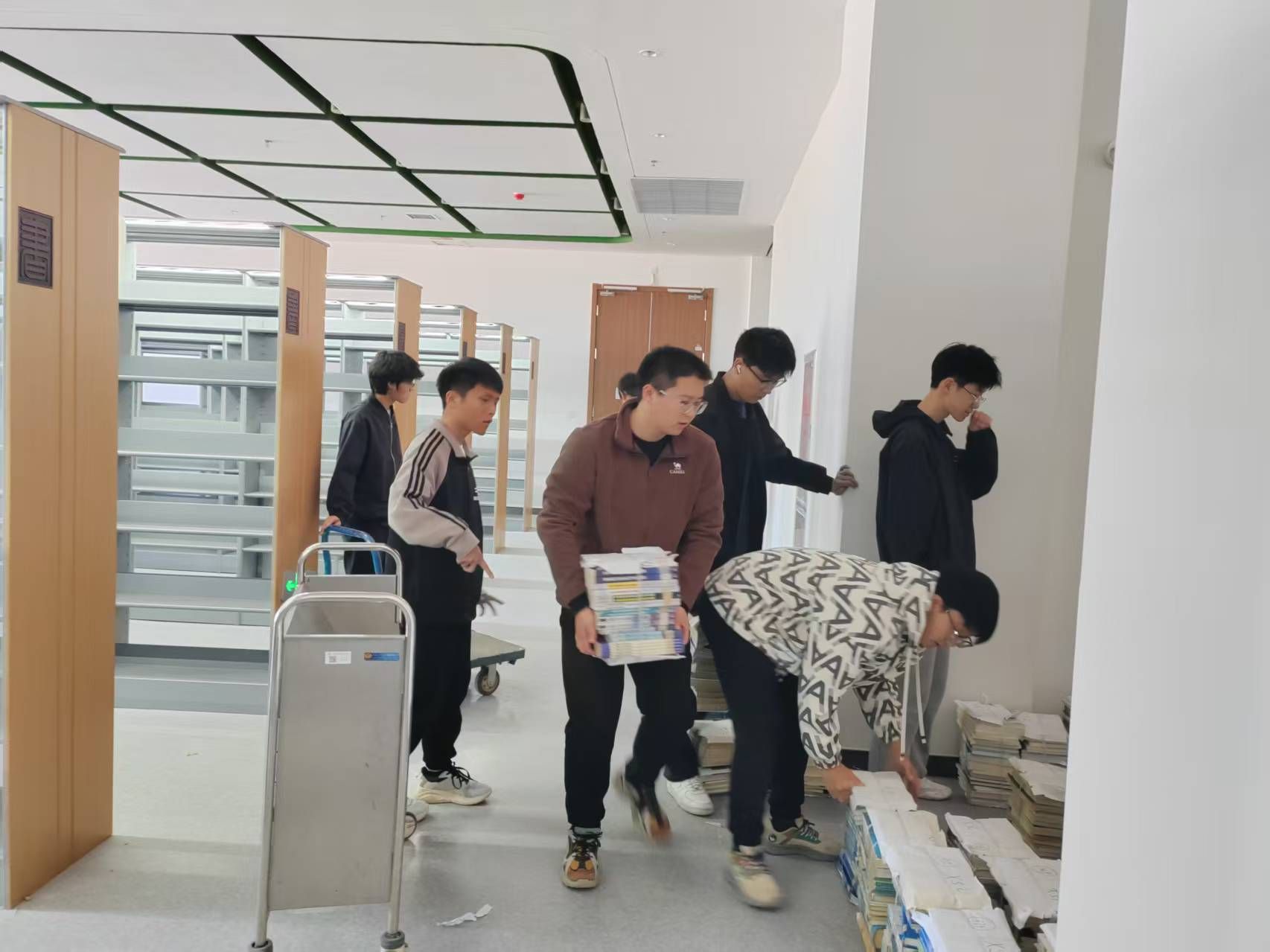 在图书馆老师的指导下,志愿者们分工协作,高效完成了部分图书搬运、上架整理及卫生清洁等工作,以实际行动展现了新时代青年的责任与担当。