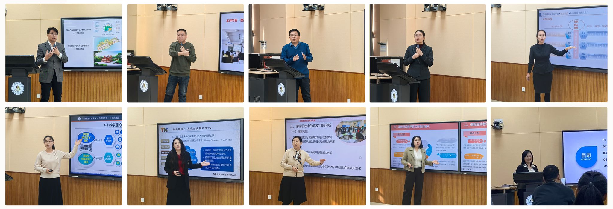 现场汇报过程中,参赛教师们精心准备,生动汇报,结合课情、学情、教情,围绕教学真实问题、教学内容整合、教学环境创设、教学评价深化等方面,分享了自己的教学创新举措和成果。评审专家围绕教学真实问题挖掘、创新教学方式、融入课程思政、融合数智技术等方面进行现场提问和打分,并给予了下一步提升改进的建议。本次现场汇报吸引了不少老师前来观摩学习,营造了浓厚的教学创新氛围,有效促进了学校教学改革经验与创新成果的交流借鉴。