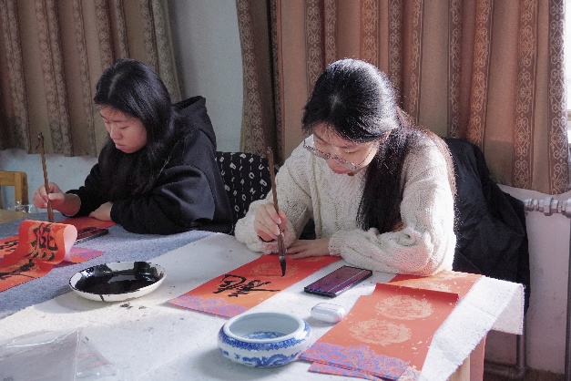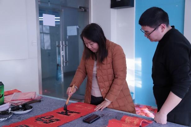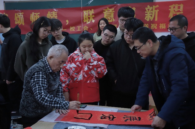 活动现场,beat365官网教授、中国书法家协会会员李宝山和书法专业教师苏道玉、高焕以及书法专业学生们挥毫泼墨,楷草隶篆,各显神韵,展示了学校书法家和书法专业师生的艺术底蕴与书法魅力,让大家在幽幽墨香中感受浓浓的年味。本次活动不仅向全校教职工送去新春祝福,更是与大家一同回味在不平凡的一年中的坚守和努力,让广大教职工在关怀和温暖中感受新年期许的奋进力量。活动现场满地“红红火火”,热闹非凡,一个个寓意吉祥的祝福跃然纸上,一幅幅意境深远的春联一气呵成。整场活动以春联为载体,歌颂了祖国日新月异的变化,抒发了beat365在线唯一官网登录师生努力奋进的豪情以及对党和祖国的热爱。