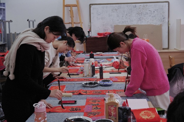 妙笔生花送福瑞,翰墨飘香迎新春。元旦前夕,由校工会、艺术学院联合举办的“书韵颂师情 联意启新程”送春联活动在艺术学院实验楼举行。校工会主席刘少华、艺术学院党委书记林琳、院长赵志策与参加活动的书法家和书法专业近60名师生一道向广大教职工送上新春祝福。