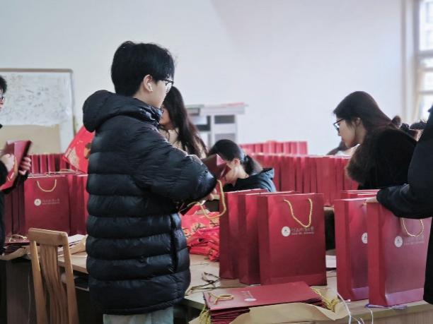 以笔墨承载祝福,筑同心,暖人心。学校书法家和书法专业师生历时七天现场创作春联1600余幅,并一一整理、装进礼盒。未来两周,这些浸润着墨韵和心意的新春礼物将陆续送到广大教职工手中,为他们带去红红火火的祝福。