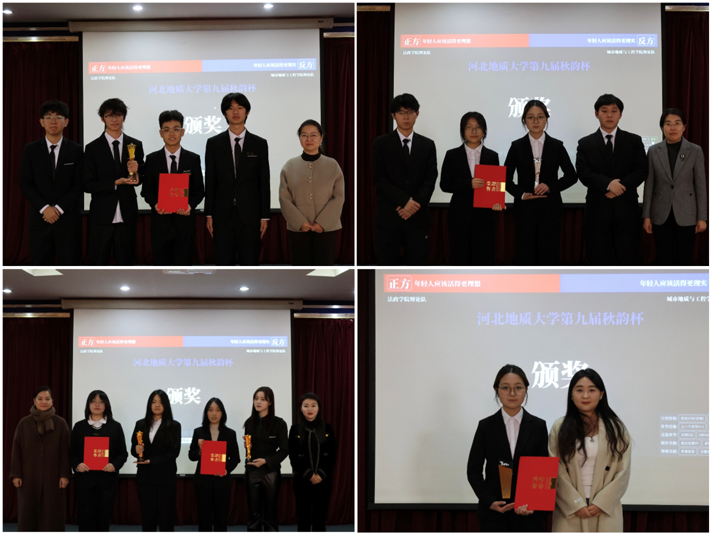 经过评委们的严谨评判,最终法政学院辩论队夺得本届“秋韵杯”辩论赛冠军,城市地质与工程学院辩论队获得亚军,地球科学学院辩论队、艺术学院辩论队获得季军。在本届比赛中还产生了15位单场最佳辩手,10位优秀学生评委,1位全程最佳辩手。至此,beat365在线唯一官网登录第九届“秋韵杯”大学生辩论赛圆满结束。