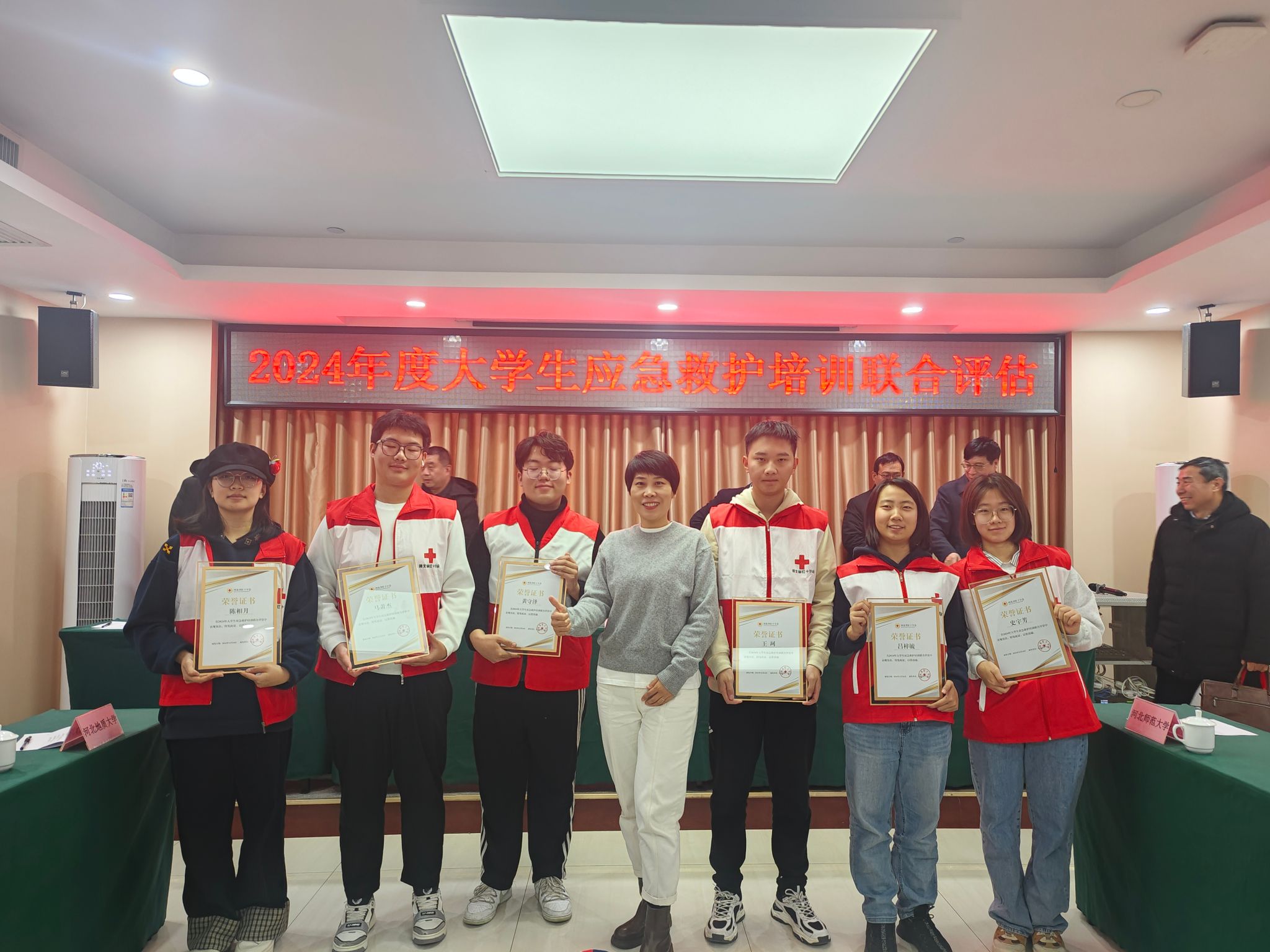 12月16日,在石家庄中山宾馆举办的2024年度省属高校大学生应急救护培训联合评估会中,beat365官网表现优异顺利通过,带队老师及参加评估的六位同学获得了河北省红十字会颁发的荣誉证书。