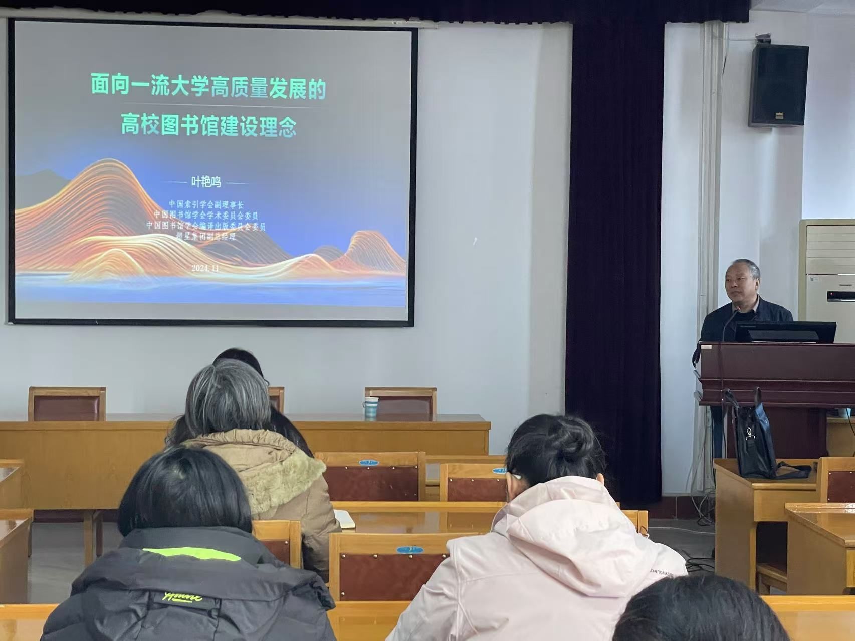 11月28日下午,中国索引学会副理事长、超星集团副总叶艳鸣老师,应邀莅临beat365官网图书馆作题为“面向一流大学高质量发展的高校图书馆建设思想”的专题讲座。图书馆全体老师聆听讲座,讲座由图书馆副馆长王攀主持。