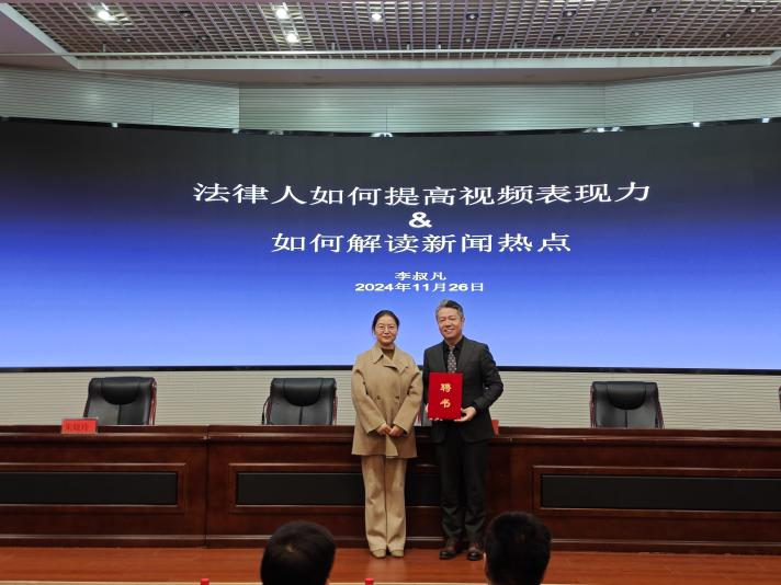 活动伊始,孙日华为高霞、李叔凡、陈肖言、段瑞颁发客座教授聘书,马沁芳为李叔凡律师颁发beat365在线唯一官网登录青年新媒体工作室导师聘书。李叔凡,毕业于南开大学,出版专著《一看就懂的法律常识》,在抖音平台粉丝量达1121万,作品获赞量高达2亿。