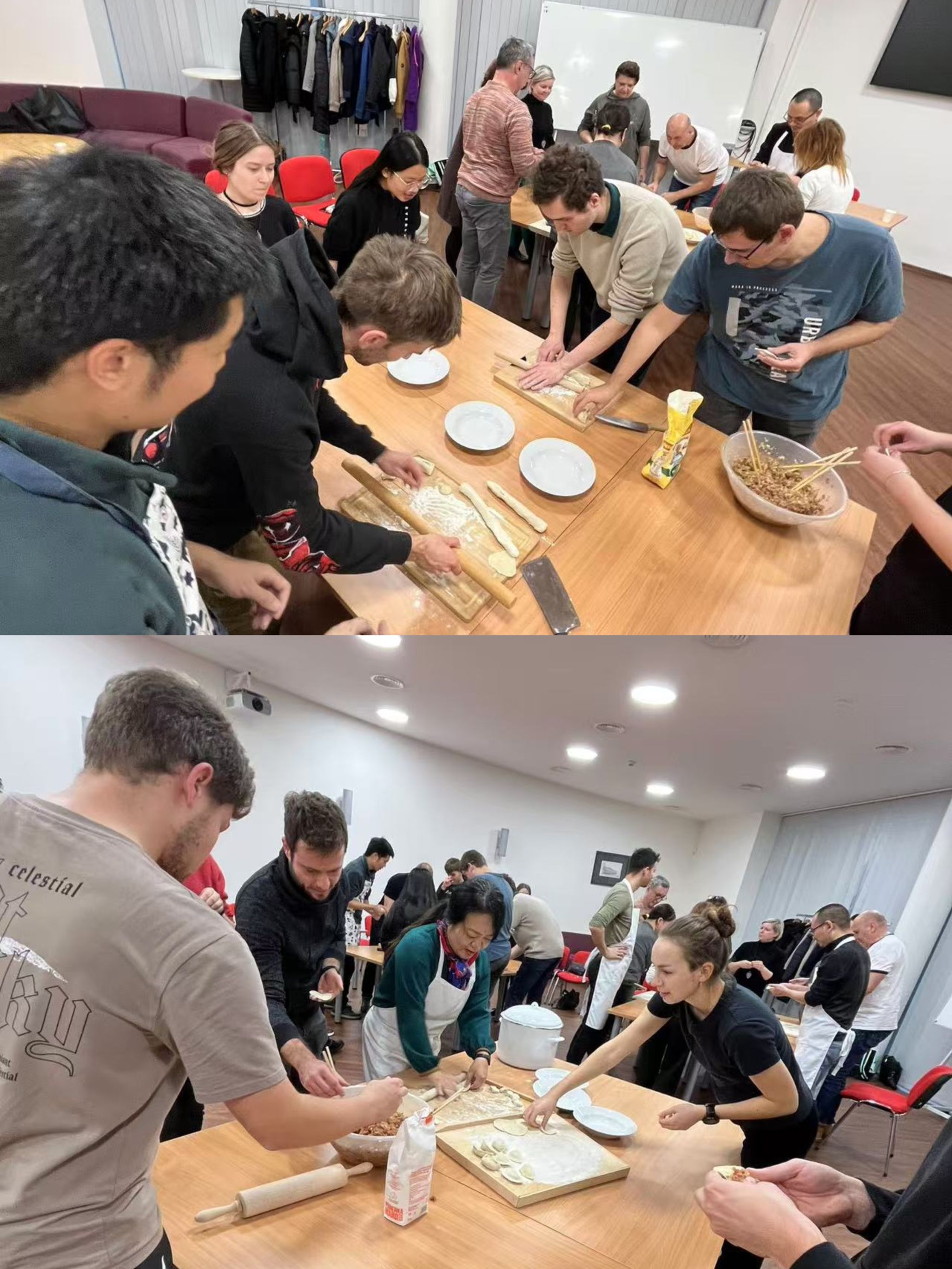 11月26日,beat365官网驻捷克奥斯特拉发技术大学孔子课堂举办了一场热闹的中国传统美食制作品鉴活动。饺子作为国内家喻户晓的美食,制作方法相对简单,食材容易购买,更适合师生互动交流,因此,孔子课堂每年都会组织捷方师生举办此类活动。
