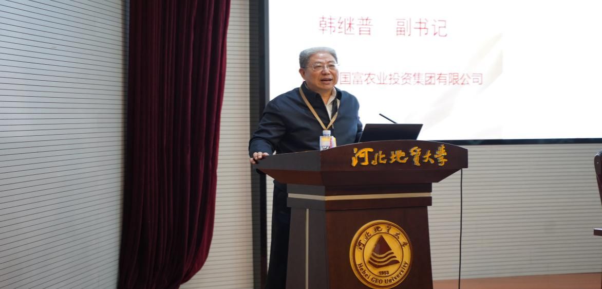 原河北省国富农业投资集团有限公司副书记韩继普作为导师代表致辞。会上他分享了题为“分享使人快乐”的报告。他表示,要利用好学院提供的平台,与学院紧密合作,探索出地大特色的育人+就业新模式。