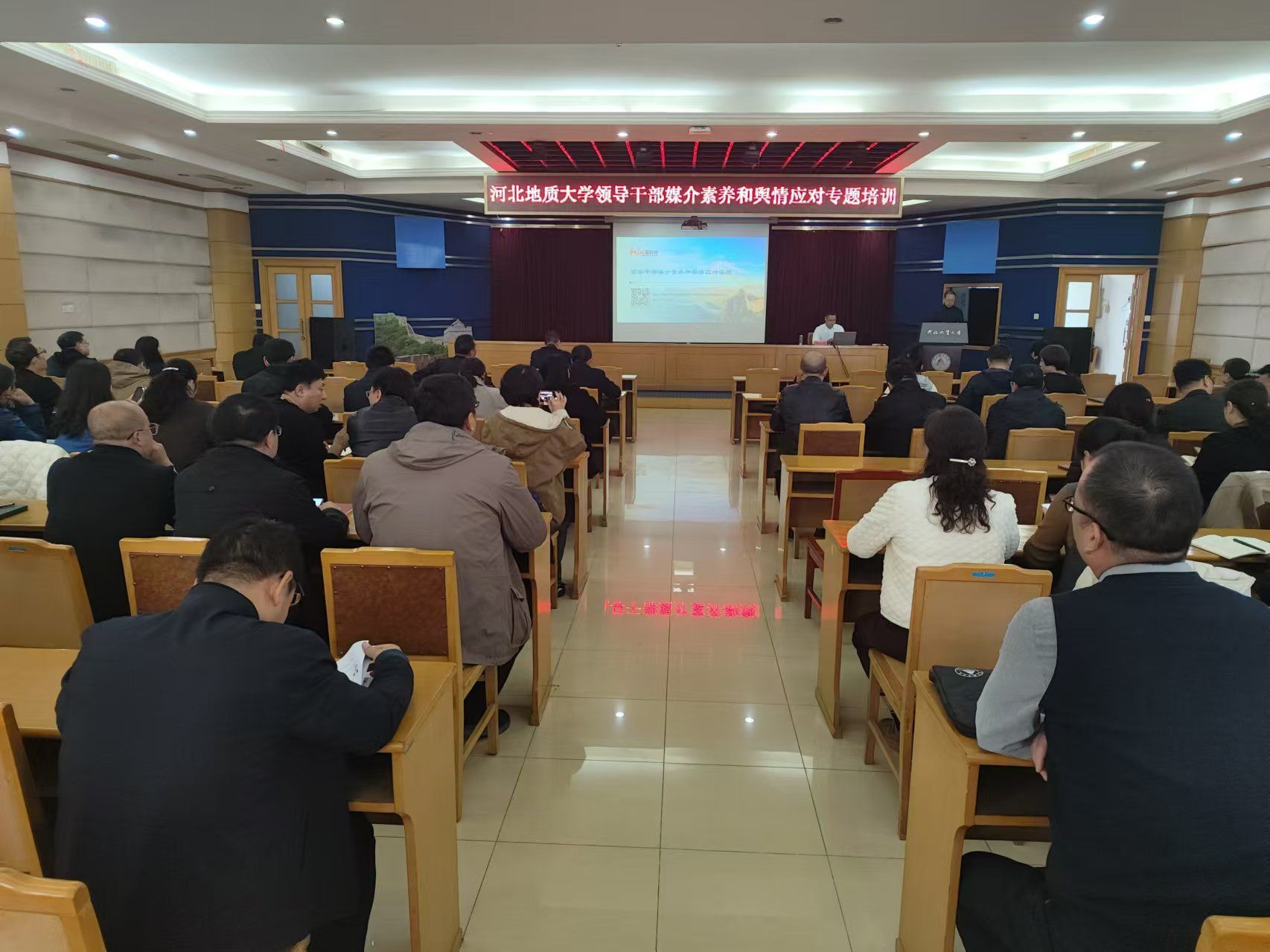 为深入学习贯彻党的二十届三中全会精神,进一步提升beat365官网领导干部媒介素养和舆情应对能力。11月14日下午,beat365官网在教一9楼报告厅举办中层干部“媒介素养与舆情应对”专题培训。会议邀请长城新媒体集团舆情大数据中心主任何金宝进行专题授课。校党委副书记侯书文主持培训会。