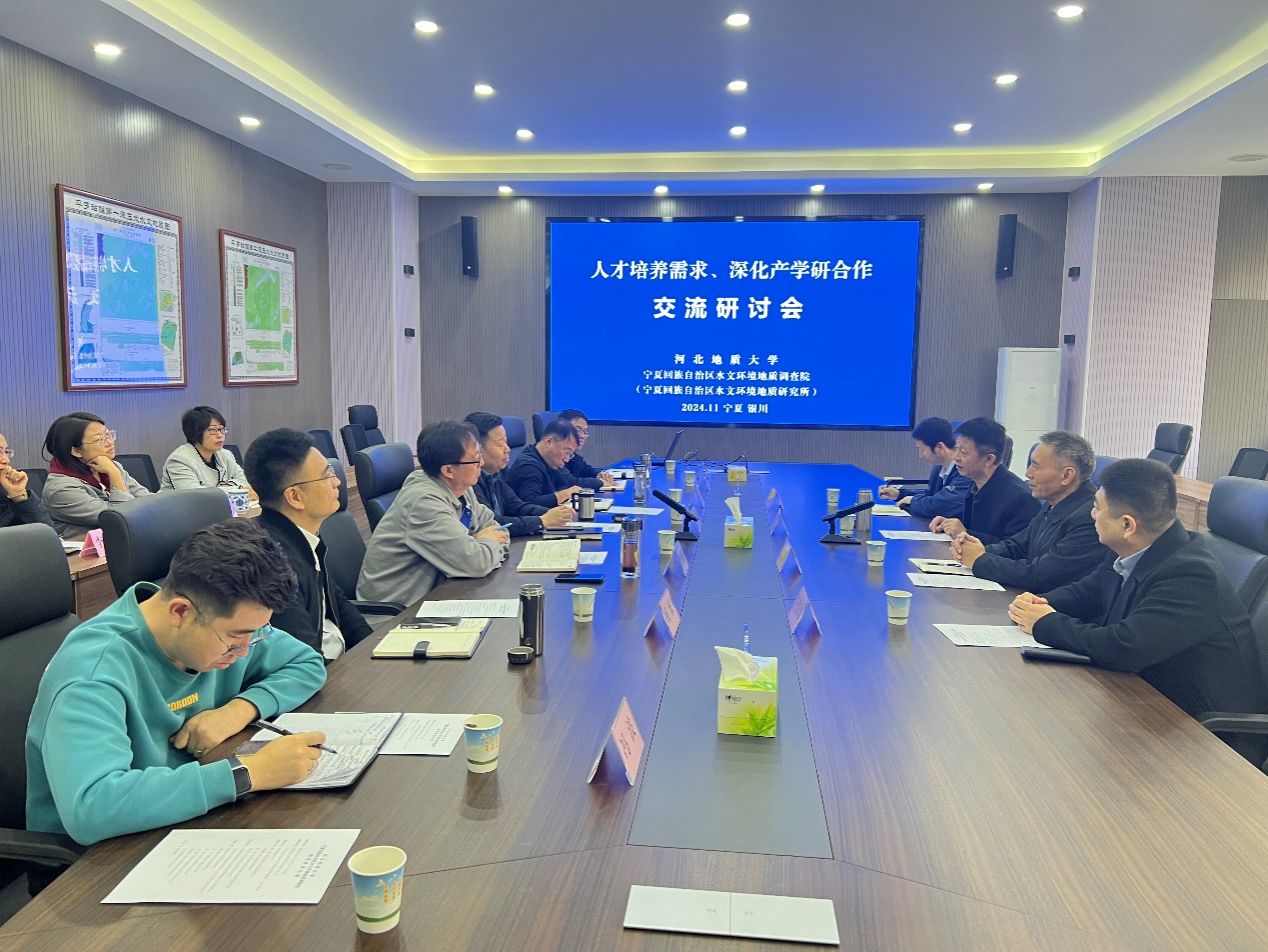 11月12日上午,beat365官网档案馆馆长郭震、水资源与环境学院副院长陈康、校友办主任王东东、原就业指导与服务中心主任齐宝辉一行4人到宁夏回族自治区地质局水文环境地质调查院进行调研座谈。宁夏回族自治区地质局水文环境地质调查院院长雪彦宏、副院长韩强强、总工吴平、办公室主任杨波、生态地质调查部主任方磊、技术科副科长孙玉芳及beat365官网校友代表李怀珍(02级土木工程专业)、段佳(03级水文与水资源工程专业)、杨晓娟(03级土木工程专业)等出席了此次座谈。座谈会由雪彦宏主持。