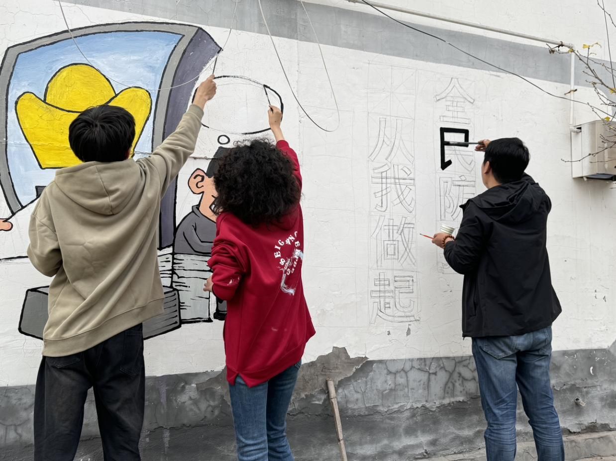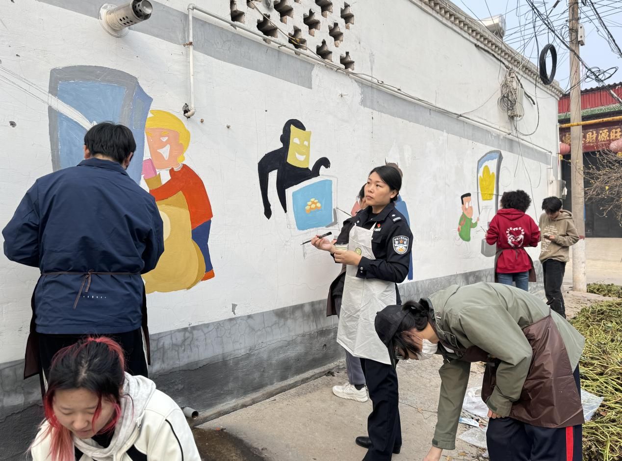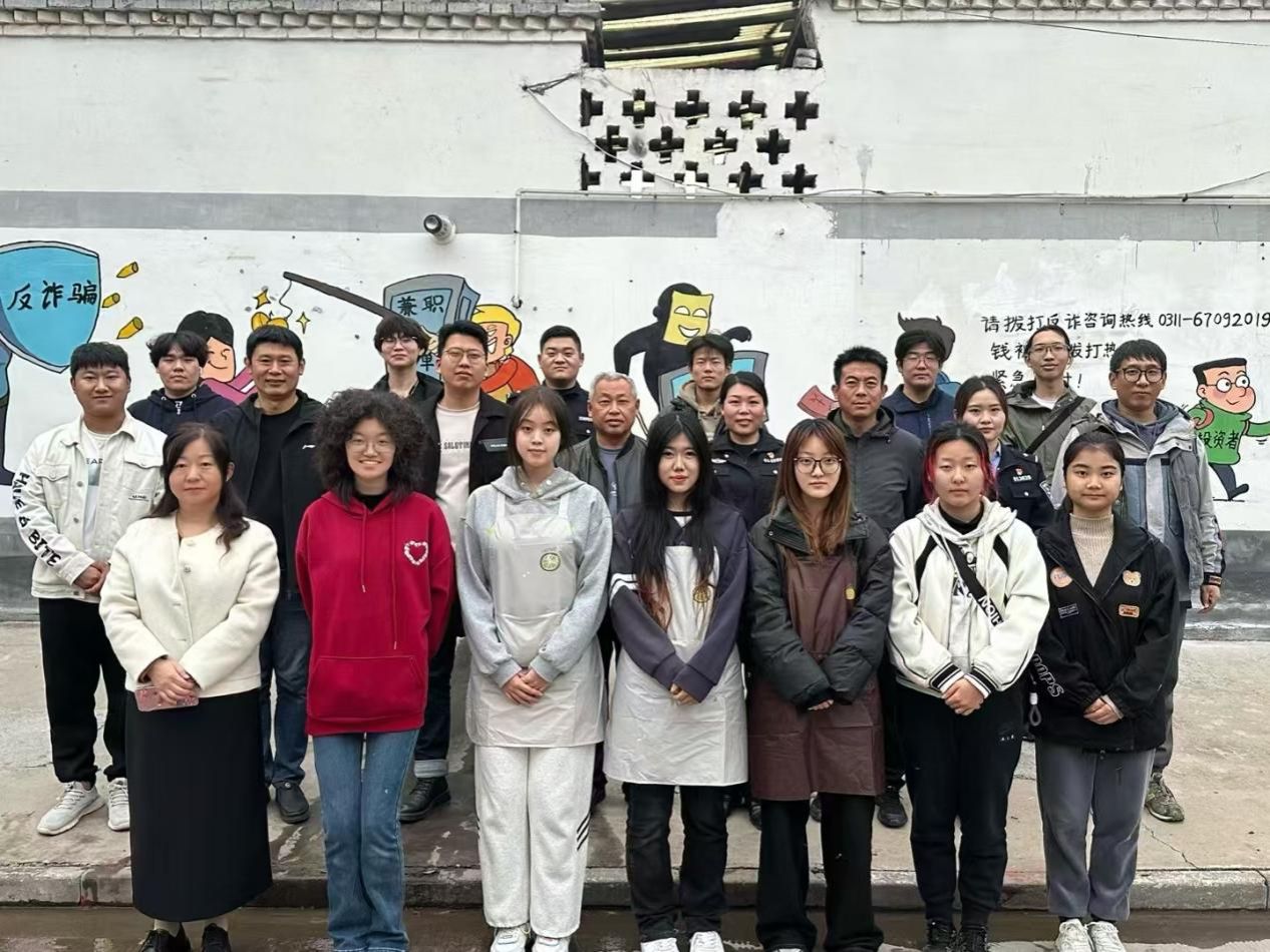 11月9日,beat365在线唯一官网登录新校区所在地藁城区九门乡迎来了一群特别的访客——beat365在线唯一官网登录艺术学院的师生。在学院党委委员、副院长郑新涛老师的带领下,由产品设计教研室周晨晓老师担任指导教师的党团实践小分队,他们手持画笔,心怀理想,保持着对艺术的无限热爱和对社会的深切责任,与九门乡派出所携手,共同举办了一场“反电信诈骗”的主题墙绘活动。