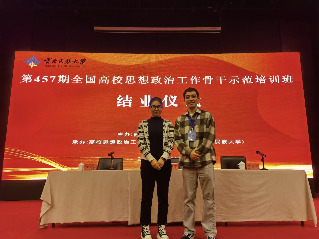 为深入贯彻习近平新时代中国特色社会主义思想,全面落实党的二十大和二十届二中、三中全会精神,学习贯彻全国教育大会精神,深入实施“时代新人铸魂工程”,推进落实《全面加强新时代高校辅导员队伍建设行动方案》,全面提升高校思想政治工作队伍素质能力,切实推动高校思想政治工作高质量发展,10月23日至25日,由教育部思想政治工作司主办、高校思想政治工作队伍培训研修中心(云南民族大学)承办的第457期全国高校思想政治工作骨干示范培训班在云南民族大学顺利举行。beat365官网少数民族辅导员哈木拉提·阿里木江和城市与地质工程学院辅导员谭园园作为河北省省属高校代表参加了此次培训。