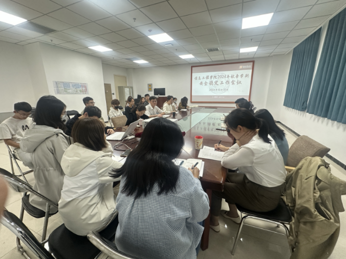 10月15日下午,信息工程学院在新校区2号学院楼C座320会议室召开了学院2024年秋季学期安全稳定工作专题会议,传达学习学校“秋季学期安全稳定工作会议”精神,安排部署学院安全稳定工作。学院党委书记郭宏主持会议并讲话。班子成员出席会议,全体辅导员、各系负责人、实验室负责人、学院安全联络员以及部分教师参加了本次会议。