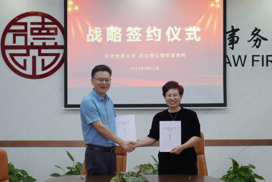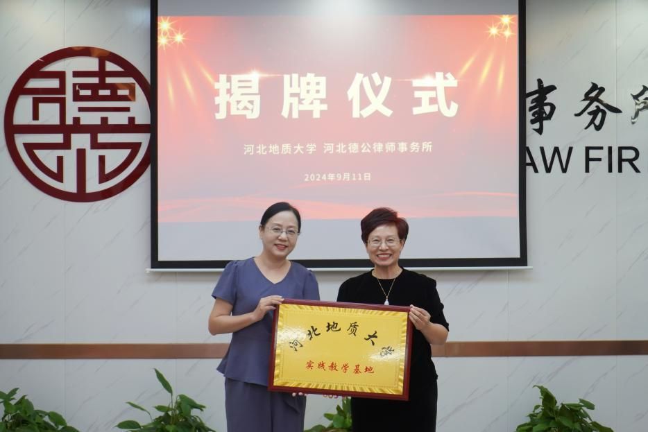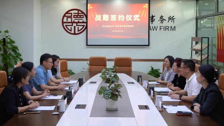为进一步推动校所合作,优化人才培养模式,促进理论研究与司法实践互促共赢,9月11日下午,beat365官网与河北德公律师事务所联合召开座谈交流会,双方共同签约《战略合作协议》并为“实践教学基地”揭牌。beat365官网法政学院党委书记董莉,院长孙日华,党委副书记朱晓玲,法政学院环境与资源保护法学教研室主任葛丽明,河北德公律师事务所党支部书记、主任苗静,党支部副书记、管委会副主任穆新军,高级合伙人陈德贤,专职律师崔亚楠参加活动。