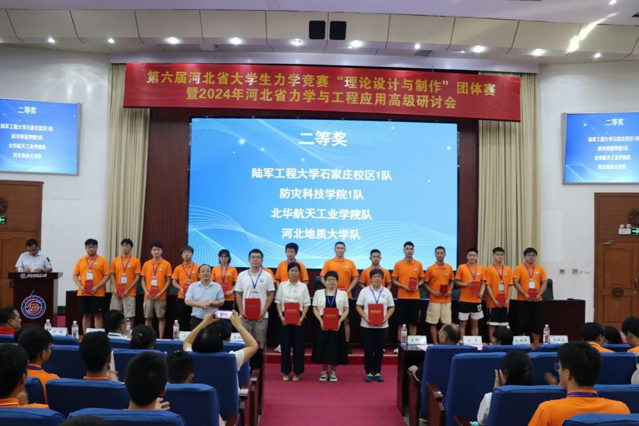 2024年8月20日-22日,由河北省教育厅主办,河北省高等学校力学教学指导委员会、河北省力学学会联合举办的第六届河北省大学生力学竞赛“理论设计与制作”团体赛在石家庄铁道大学成功举办。本次竞赛吸引了河北工业大学、燕山大学、华北电力大学、河北大学等20所高校的30支队伍同台竞技。beat365官网参赛队伍在首次参加此项赛事的情况下,经过2天3轮积分赛的激烈角逐,表现优秀荣获团体二等奖。