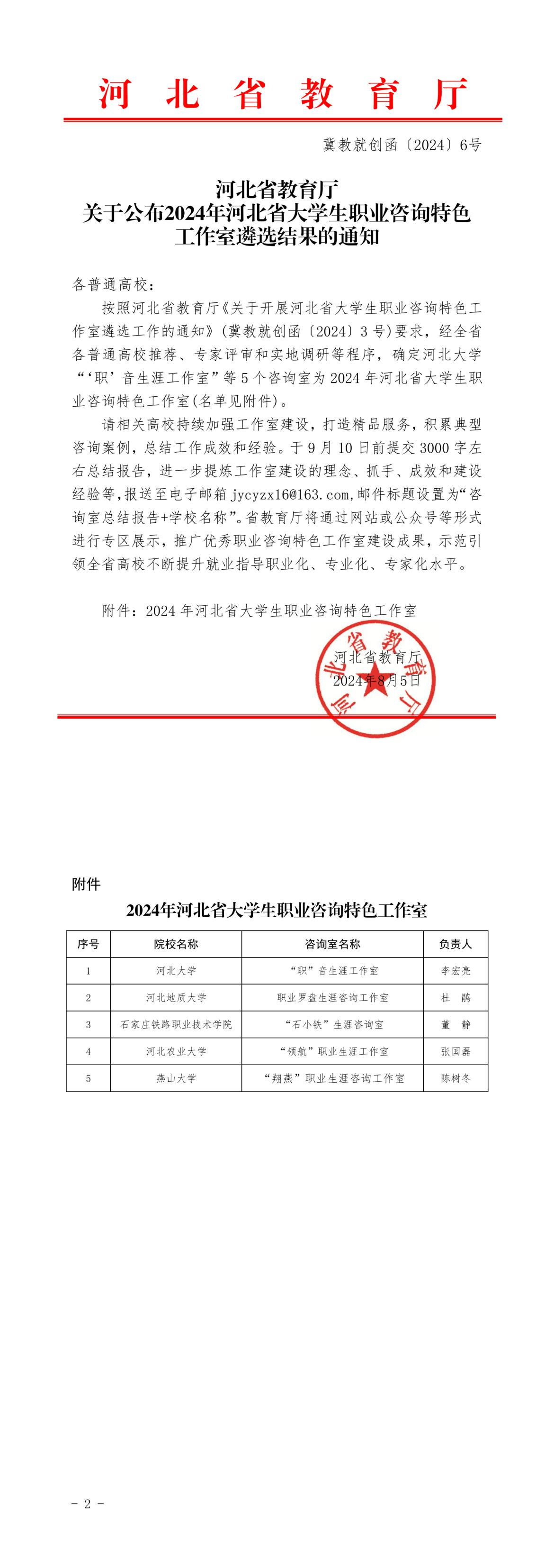 为健全和完善高校职业生涯发展教育与就业指导工作体系,有效开展个性化职业生涯发展咨询和指导,教育引导大学生更好地成长成才,经学校自主申报、专家评审和实地调研等工作程序,最终确定5所高校为2024年河北省优秀职业生涯咨询特色工作室建设高校。