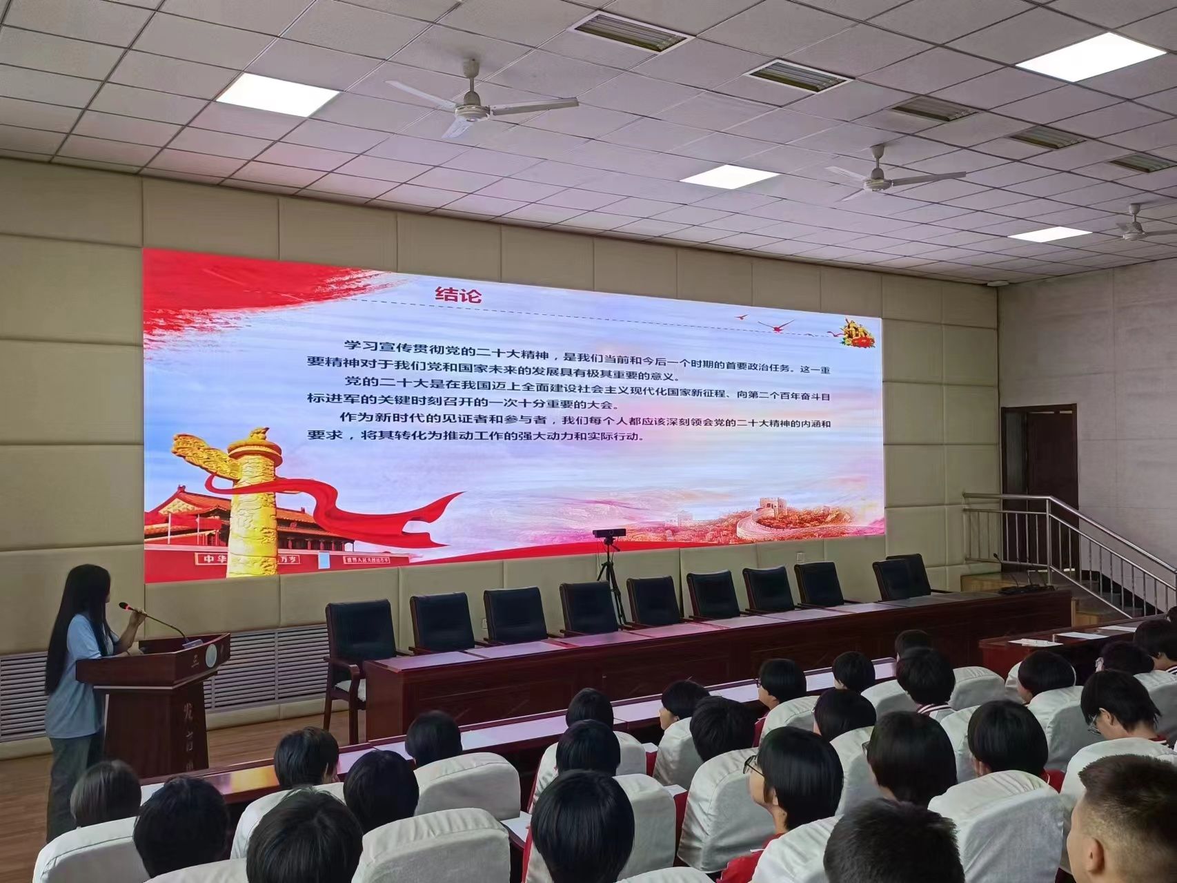 小分队成员对五年来党和国家事业取得的辉煌成就进行了全面而细致的梳理。从“嫦娥”奔月的壮丽探索到“天问”落火的科学壮举,每一个成就都被赋予了鲜活的生命力,仿佛一幅幅壮丽的画卷在眼前徐徐展开,同学们从中深切感受到了国家的强大与繁荣。宣讲过程中,小分队成员还着重介绍了党的二十大精神中的领军人物,他们以非凡的智慧和勇气,引领着国家和民族不断向前迈进。这些领军人物的事迹,如同一盏盏明灯,照亮了同学们前行的道路,激发了他们强烈的民族自豪感和自信心。在解读党的二十大精神核心要义的同时,小分队成员更不忘引导同学们深入思考个人与国家的命运共同体关系。他们鼓励大家将个人的青春梦想融入国家发展的宏伟蓝图之中,以勤奋学习为舟,以立志成才为帆,勇敢地驶向实现中华民族伟大复兴的彼岸。