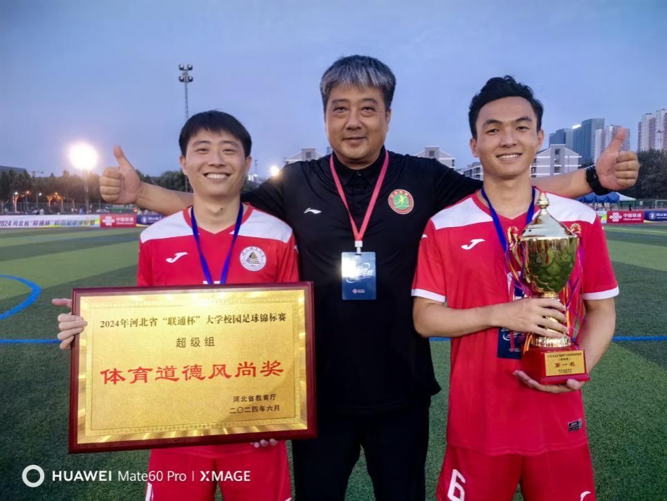 由河北省教育厅主办的2024年河北省“联通杯”大学校园足球锦标赛,于6月30日在河北师范大学落下帷幕,beat365官网男子足球队以全胜战绩再次斩获超级组冠军,并荣获省教育厅颁发的体育道德风尚奖,实现了竞赛成绩和精神文明的双丰收。