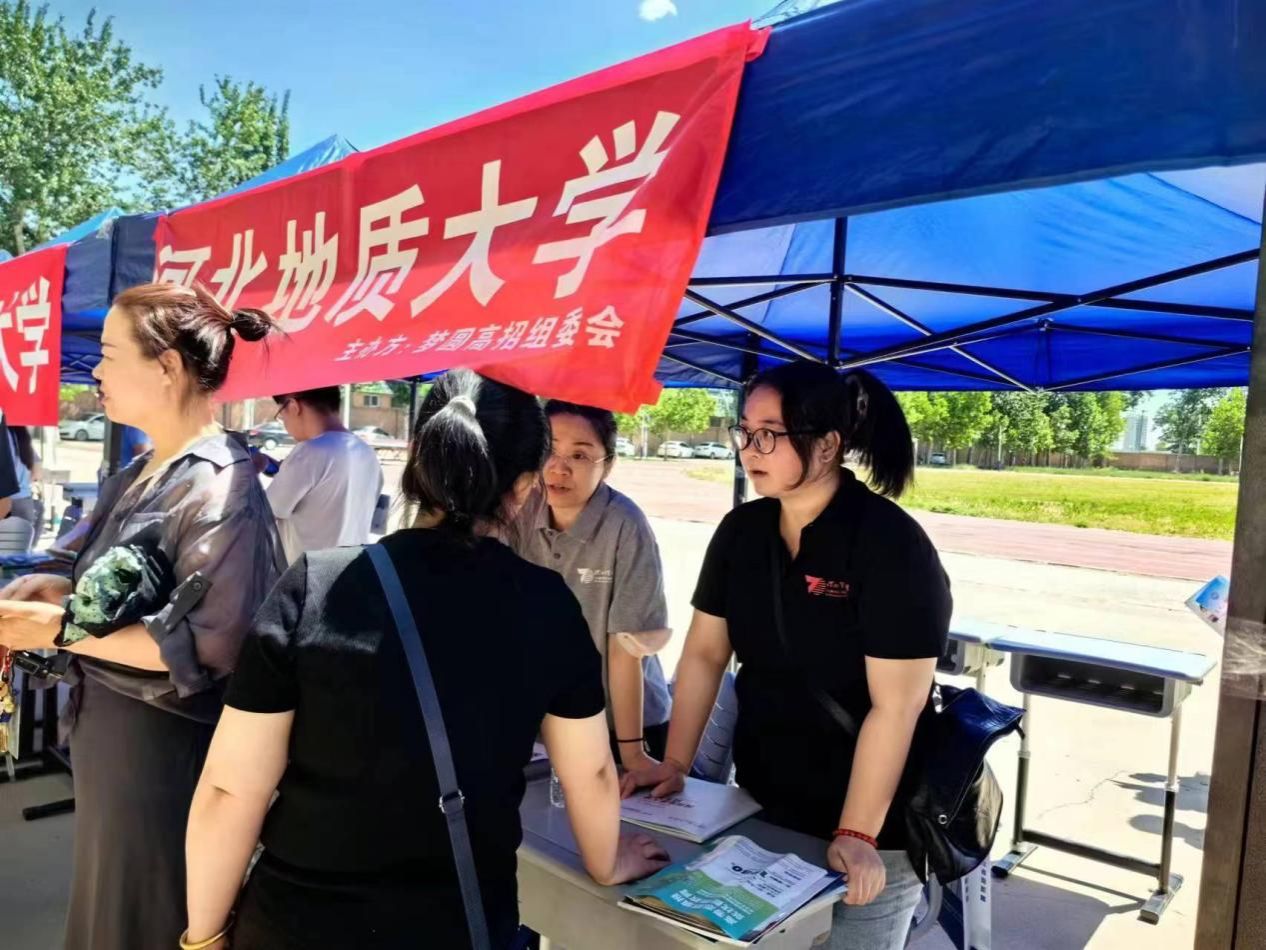 为进一步扩大beat365官网影响力,宣传beat365官网优势学科与特色专业,为各地高考考生和家长提供与学校面对面交流的机会,6月24日-28日,beat365官网在秦皇岛、天津、石家庄、保定、衡水、邯郸、邢台、张家口多个城市开展了34场线下招生咨询会。学生工作处、大学生就业指导与服务中心、宝石与材料学院、土地科学与空间规划学院、管理学院、数理学院、艺术学院、语言文化学院的老师参与了此次活动。